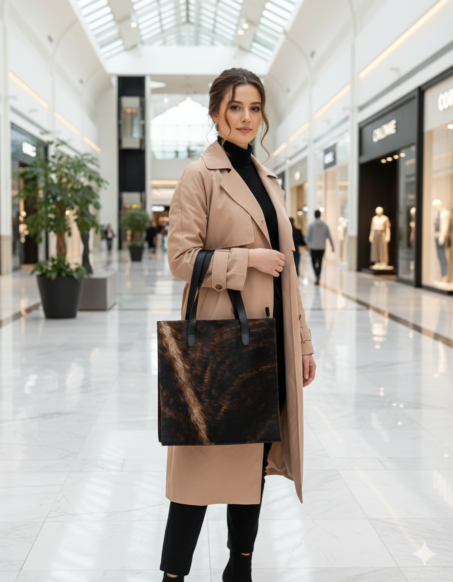 Nuestros bolsos combinan cuero de alta calidad y pelo, ofreciendo un toque distintivo y sofisticado.